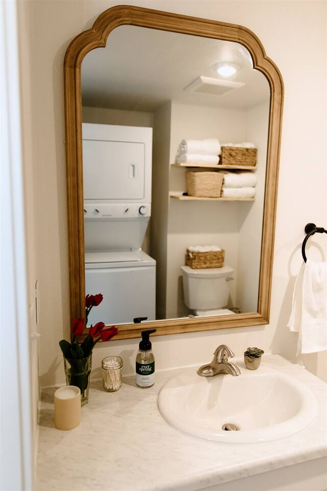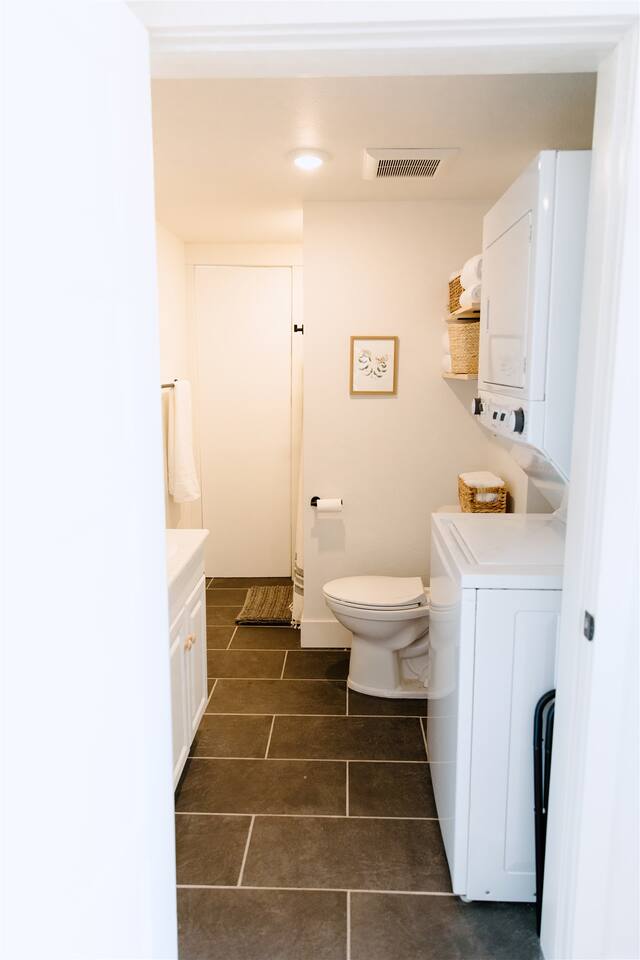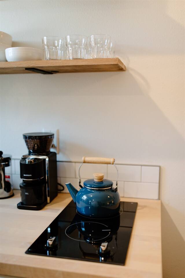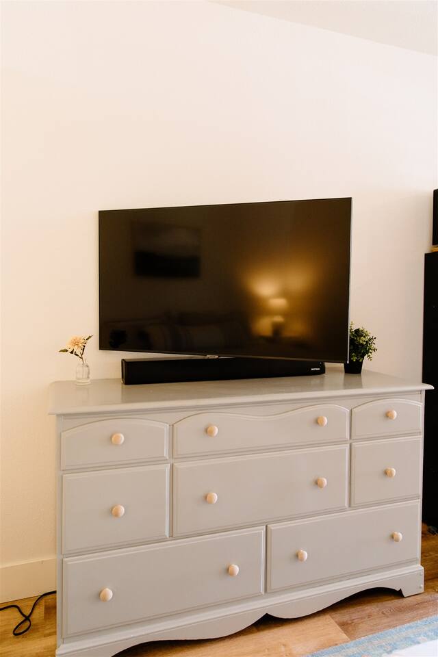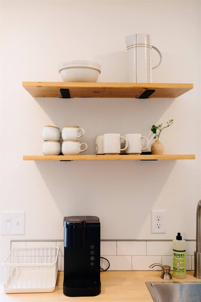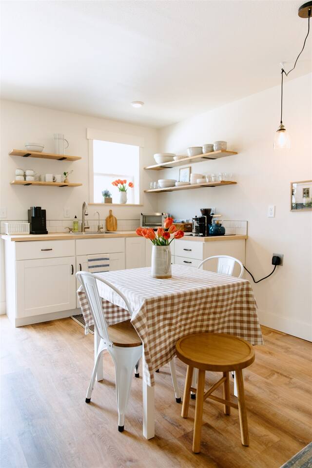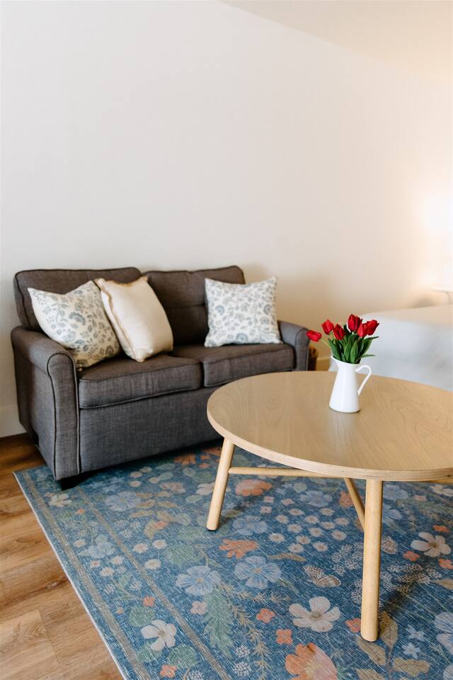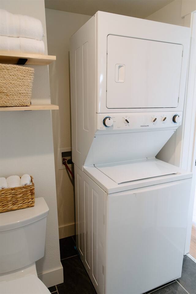 Kitchen: Fully stocked with pots, pans, utensils, knives, plates/platters, and basic spices. You'll have both a Keurig and a French Press (beans and grinder provided), so you'll be sure to have a great cup of coffee each morning :). Filtered water on tap, and a full sink, with a drying rack. You'll also have a toaster oven and a electric stovetop for any cooking. Dining: We have a dining table which seats up to 4 (it seats 2 comfortably in the dining nook, or you can pull it out a few feet and seat a larger group). Salt and pepper provided :) Living Room: Love seat which converts to a twin pull out bed for any extra guests. 43 inch smart TV on a pivot arm (so you can pull it out to face the bed if you'd like), with a great sound bar. You can use netflix, or connect any of your other streaming services! Bedroom: King sized bed, charging dock provided on a bedside table for all of your devices. Bathroom/Laundry: Fully stocked bathroom with a stack washer/dryer for all of your laundry needs. Outdoor Patio: Fenced in patio area with four Adirondack chairs (or you and your friends :). You'll also have a propane firepit - you can leave the cover on the firepit and it also functions as a table.